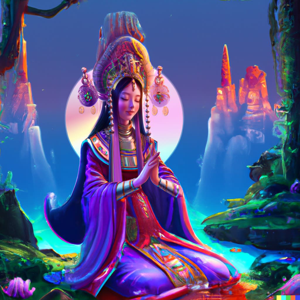 I’m collaborating with DALL·E 2 to imagine novel Buddhas and Bodhisattvas, and will share my favorite results here. Prompts used to generate the images are included at the bottom. You can support me in creating more by donating on Patreon.